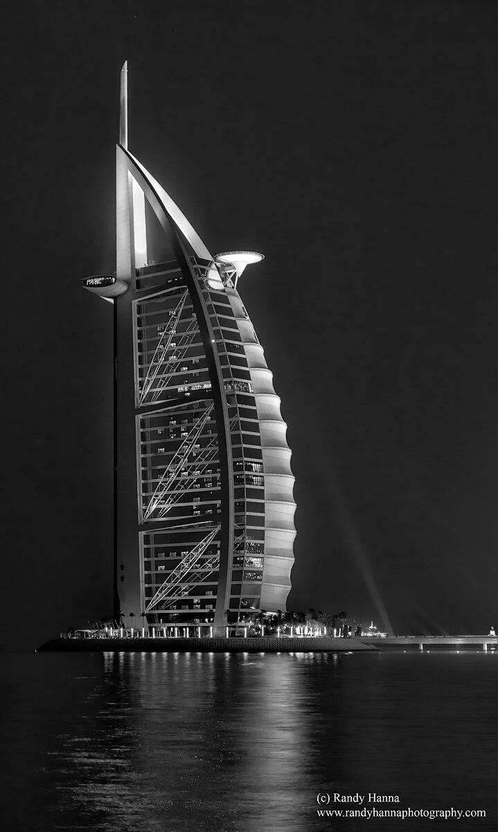 I did find time to do some shooting while in Dubai. The Iconic Bur Al Arab is most often seen in color. With the lighting conditions, I decided to hand blend this into a b&w.